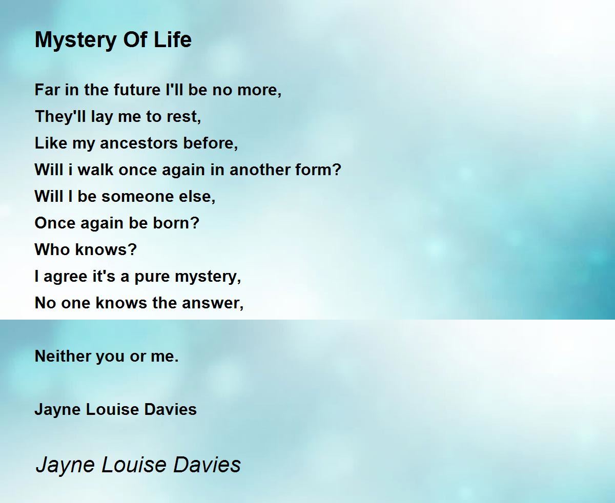 I wish we could get to the bottom of the mystery called life! A question that bothers all thinkers! Well penned!