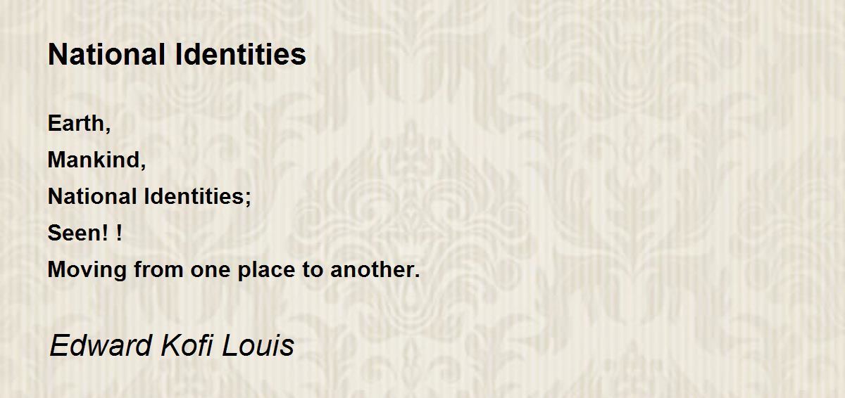 Earth, Mankind, National Identities; Seen! ! Moving from one place to another.