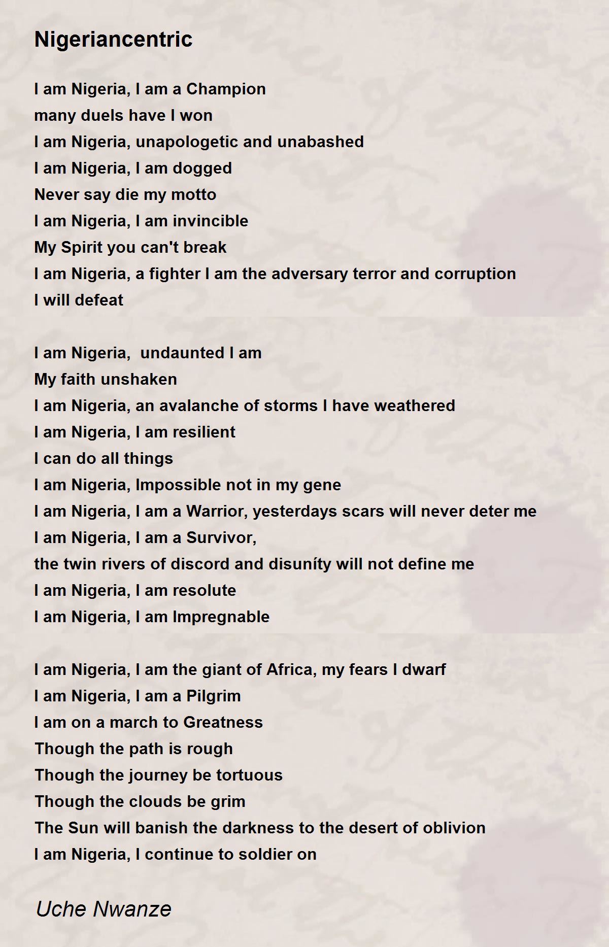 I am Nigeria, a fighter I am the adversary terror and corruption I will defeat