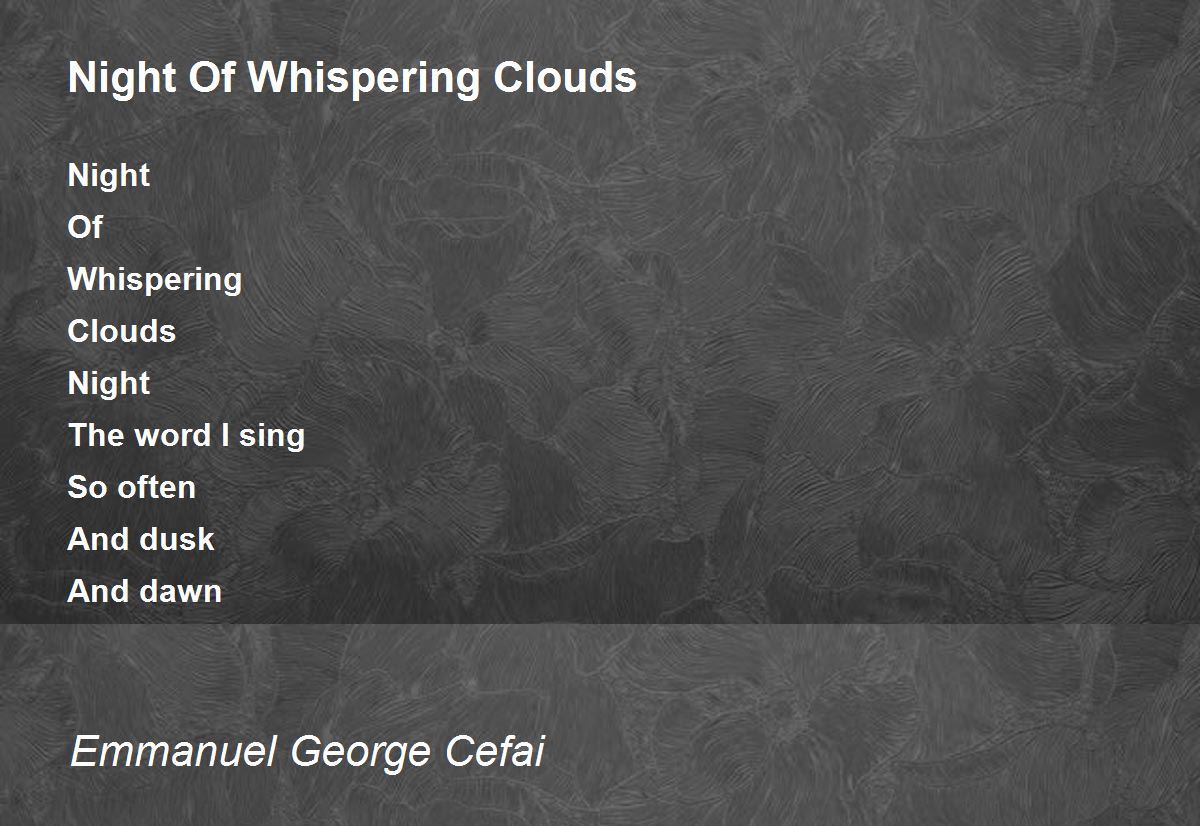 Night Of Whispering Clouds Night The word I sing So often And dusk And dawn