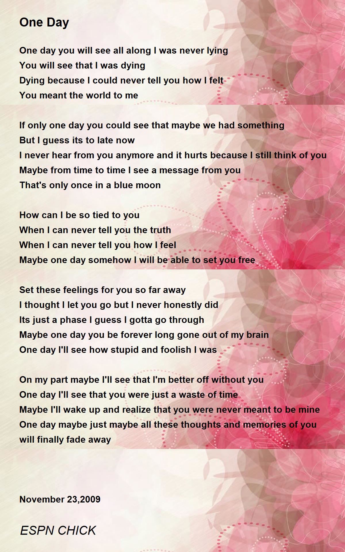 One day maybe just maybe all these thoughts and memories of you will finally fade away