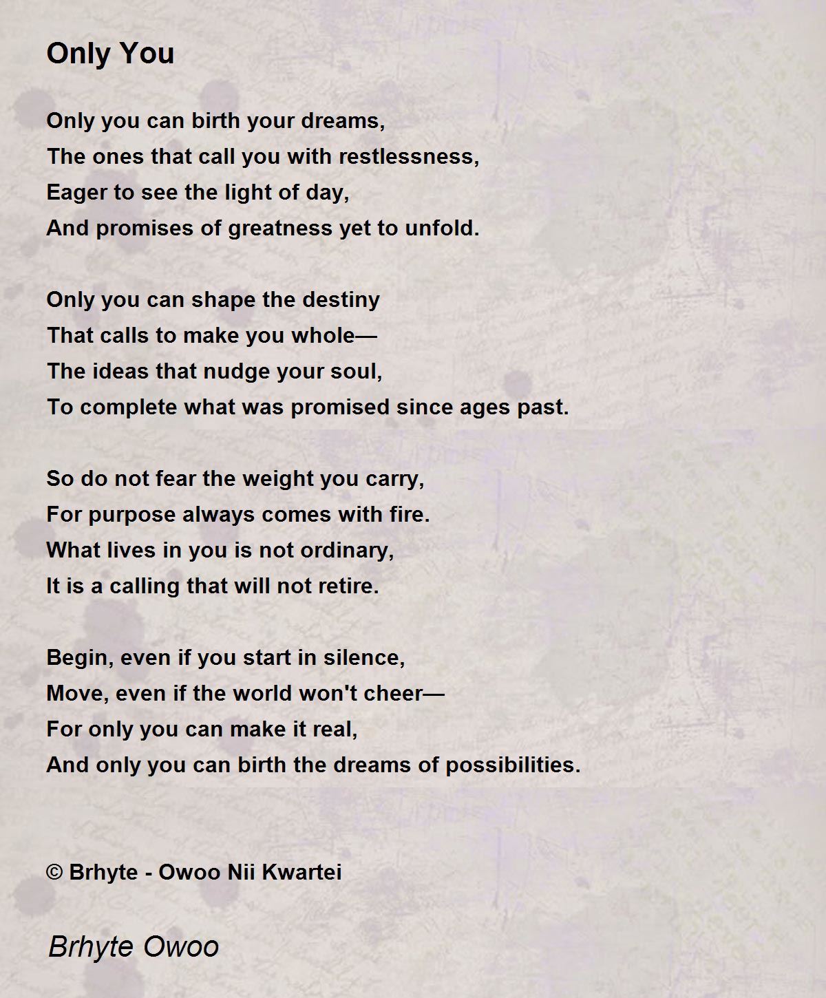 And only you can birth the dreams of possibilities.