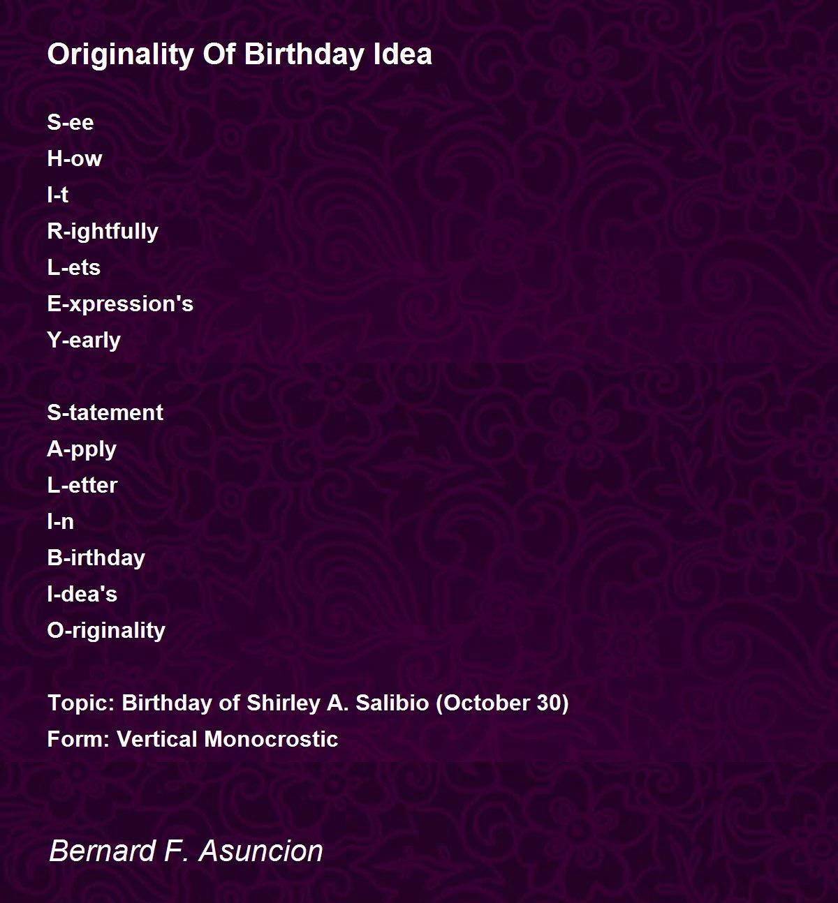 Topic: Birthday of Shirley A. Salibio (October 30)