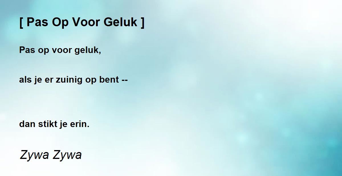 Pas op voor geluk, als je er zuinig op bent -- dan stikt je erin.