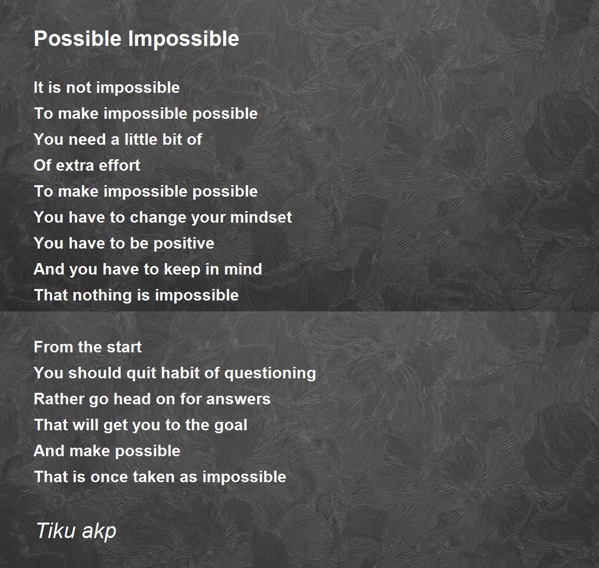 True true. It was impossible for us to share poems online like this. Now it seems normal. So go on try the impossible