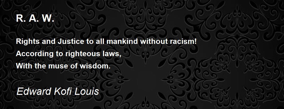 Rights and Justice to all mankind without racism! ! Righteousness, Righteous laws; With the muse of the truth! With the beauty of wisdom.