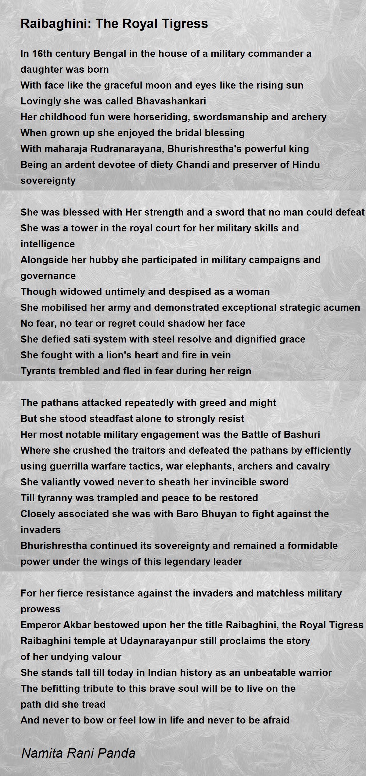 Emperor Akbar bestowed upon her the title Raibaghini, the Royal Tigress