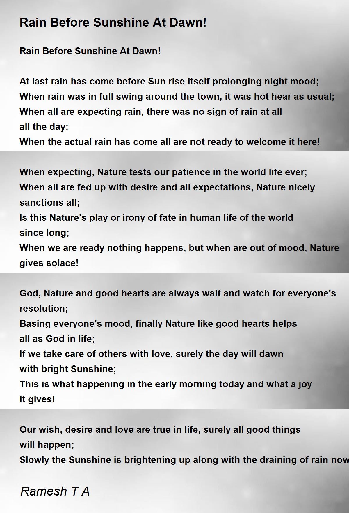 Basing everyone's mood, finally Nature like good hearts helps all as God in life;