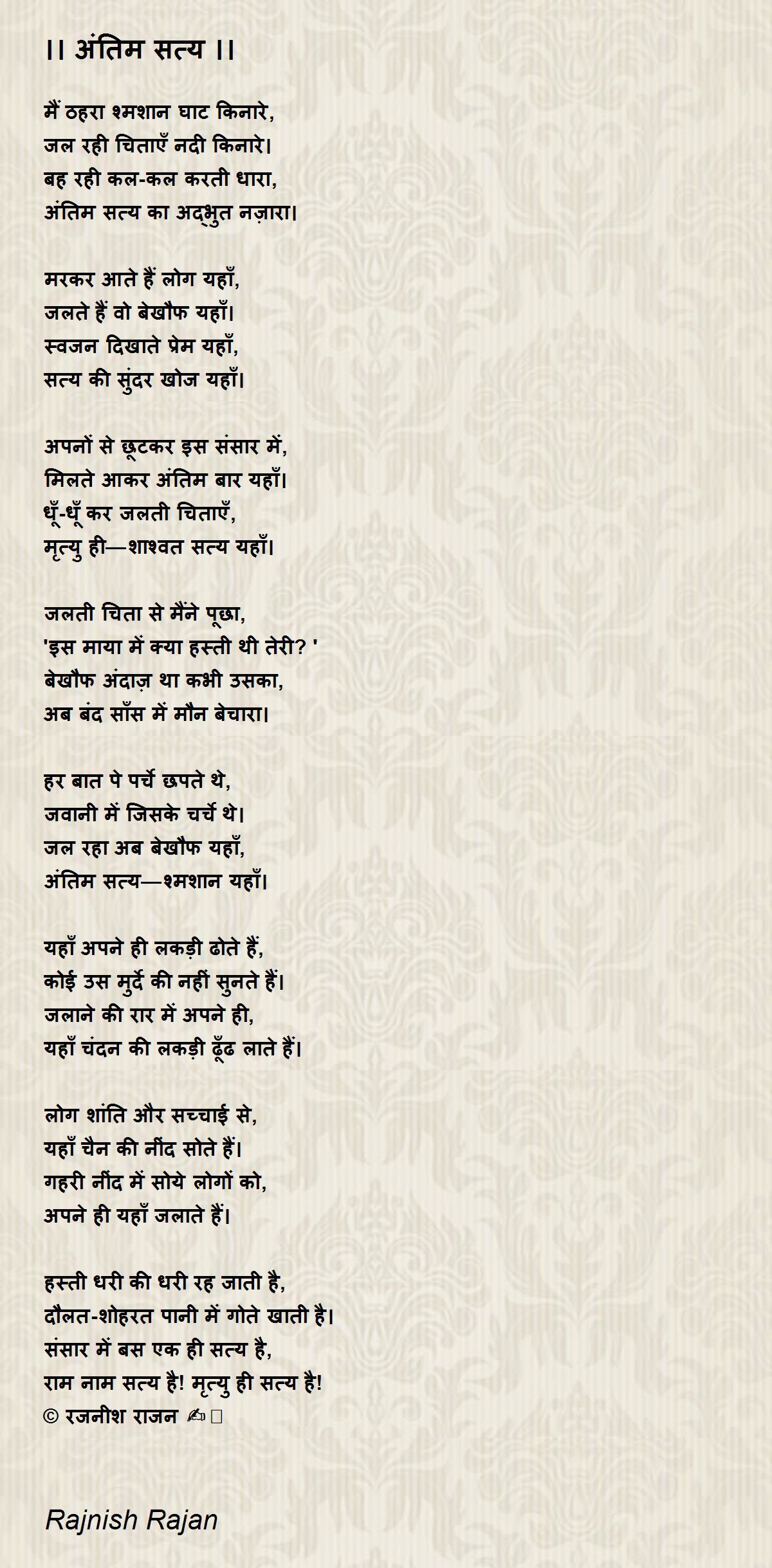 ।। अंतिम सत्य ।। Poem by Rajnish Rajan