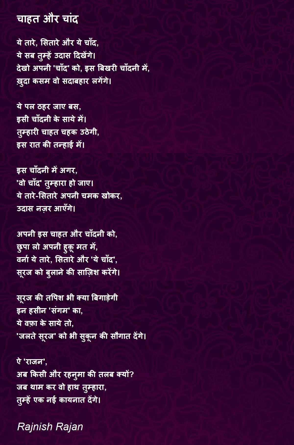 अपनी इस चाहत और चाँदनी को,