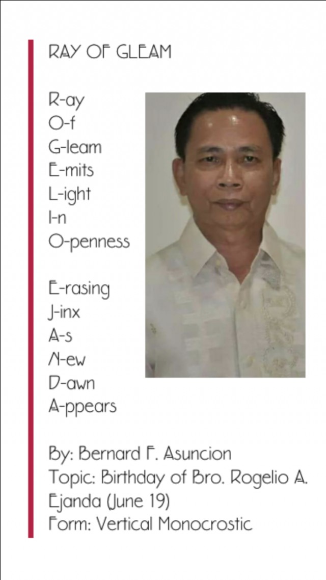 Topic: Birthday of Bro. Rogelio A. Ejanda (June 19)