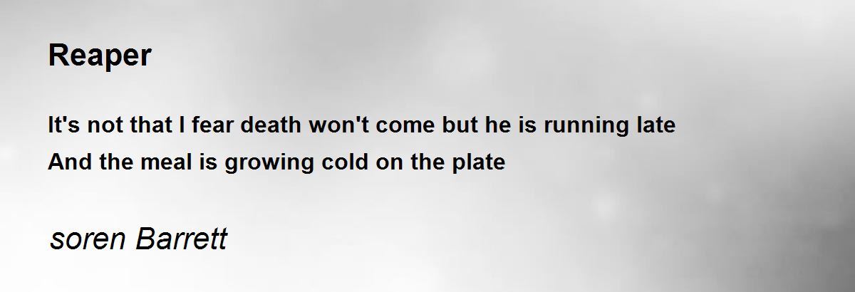 It's not that I fear death won't come but he is running late And the meal is growing cold on the plate