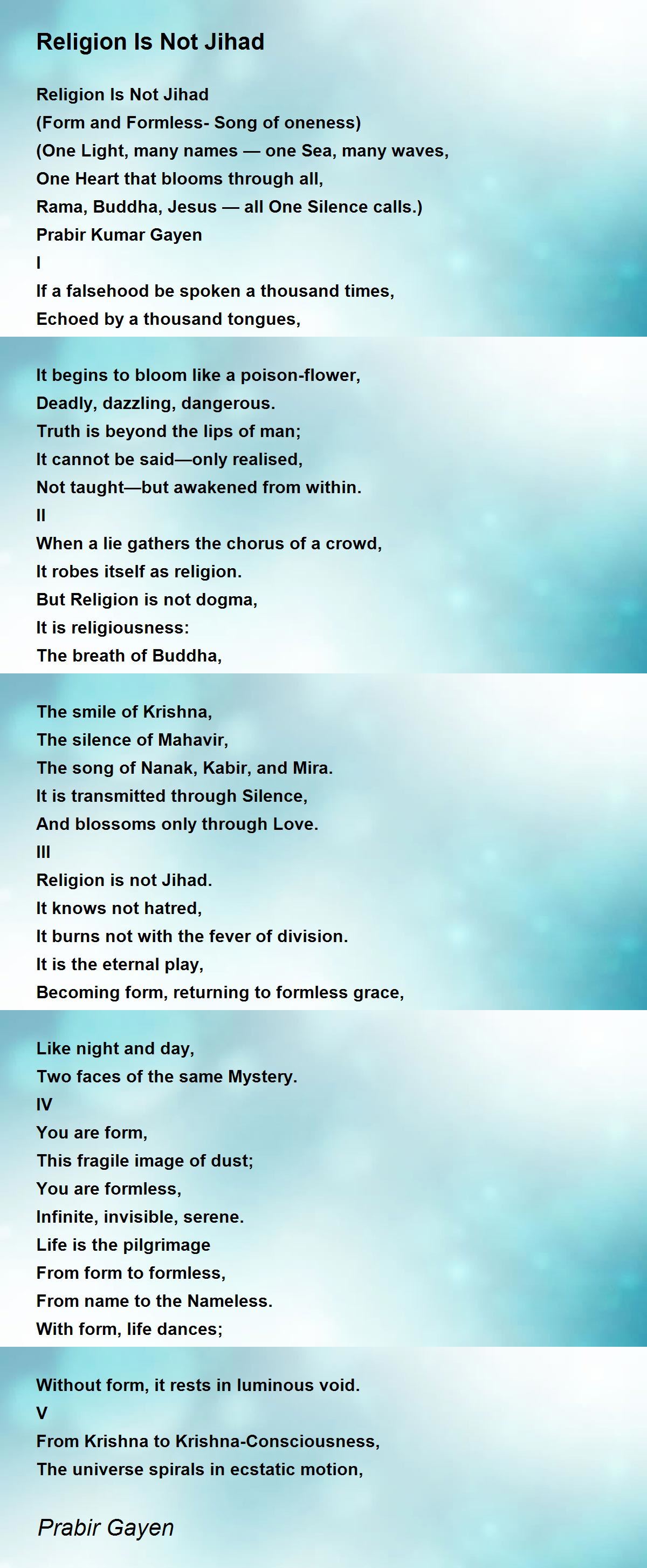 Rama, Buddha, Jesus — all One Silence calls.)