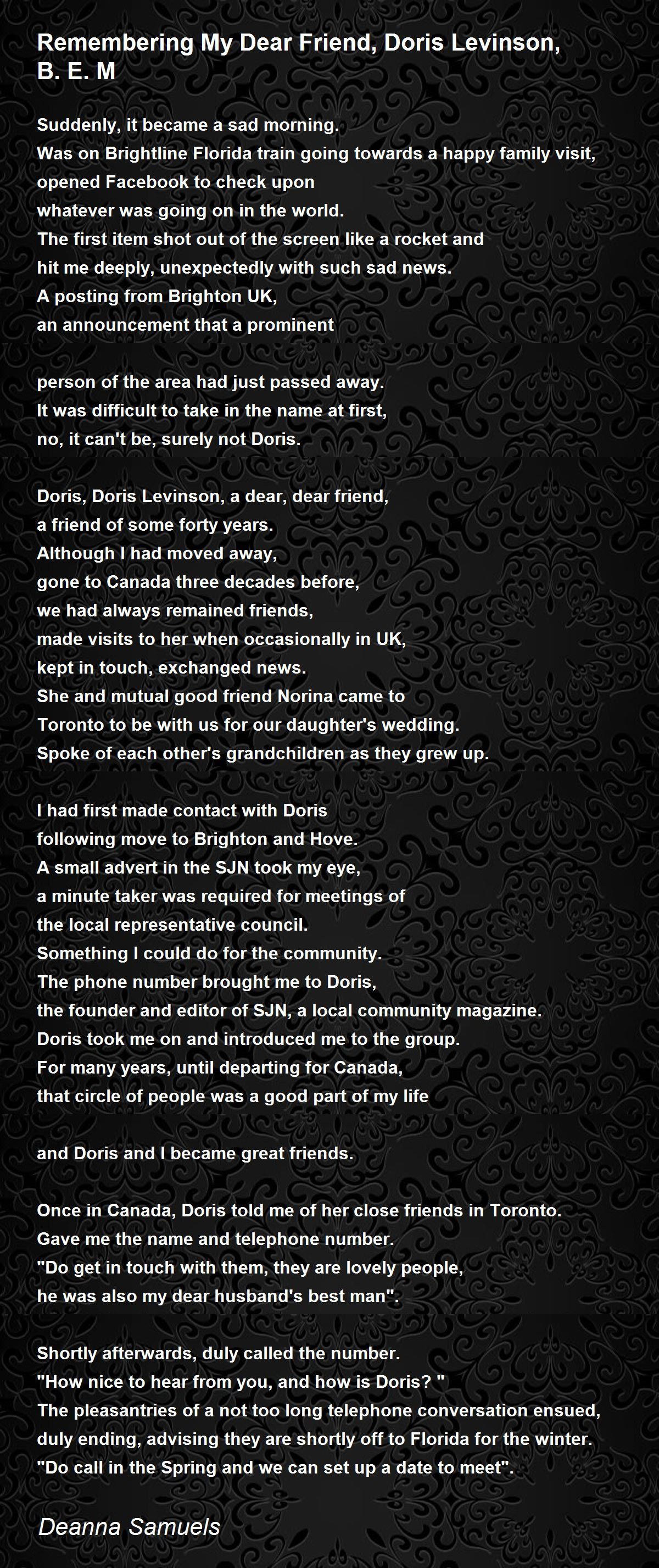 Doris, Doris Levinson, a dear, dear friend,