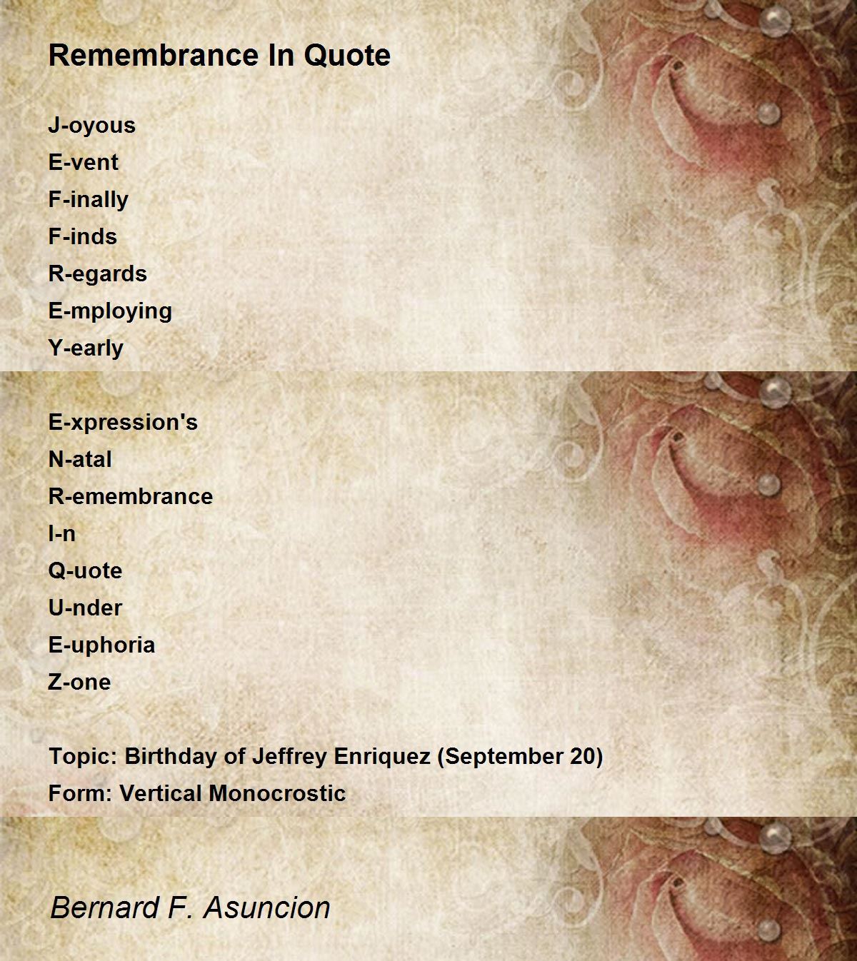 Topic: Birthday of Jeffrey Enriquez (September 20)