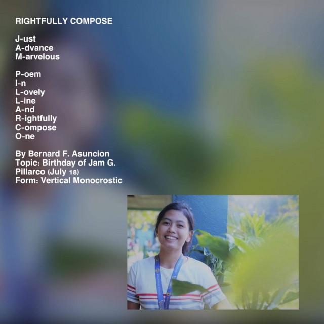 Topic: Birthday of Jam G. Pillarco (July 18)