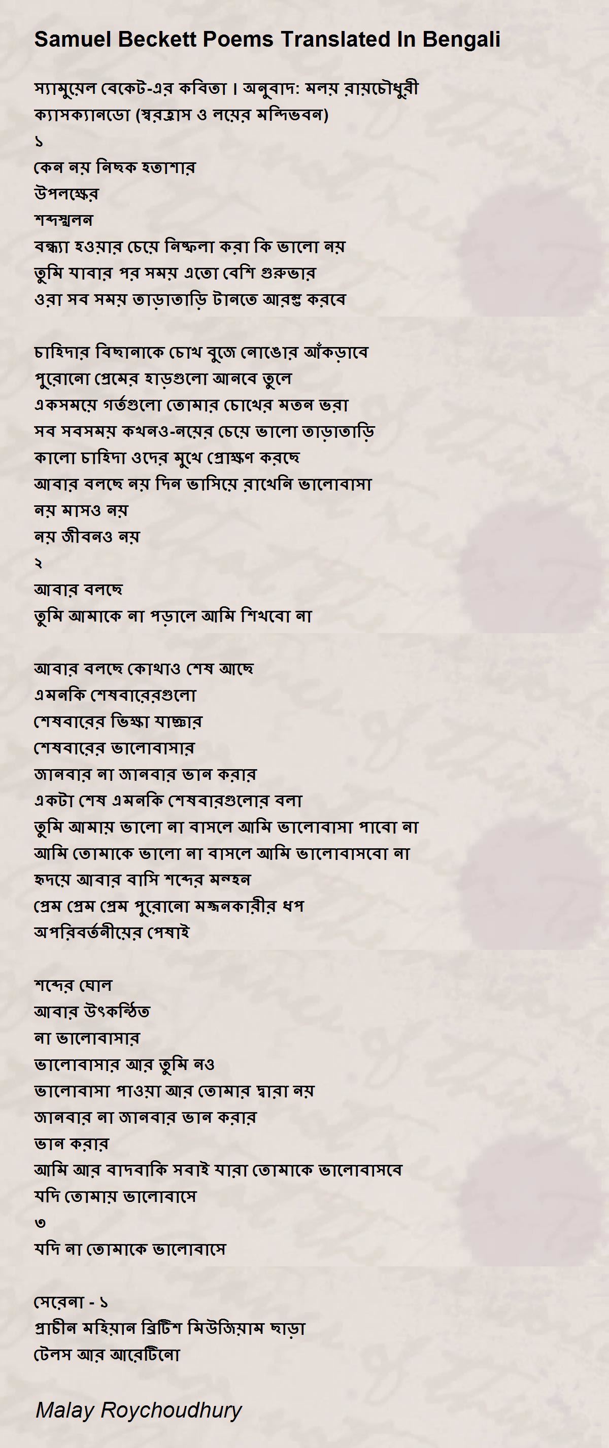 স্যামুয়েল বেকেট-এর কবিতা । অনুবাদ: মলয় রায়চৌধুরী