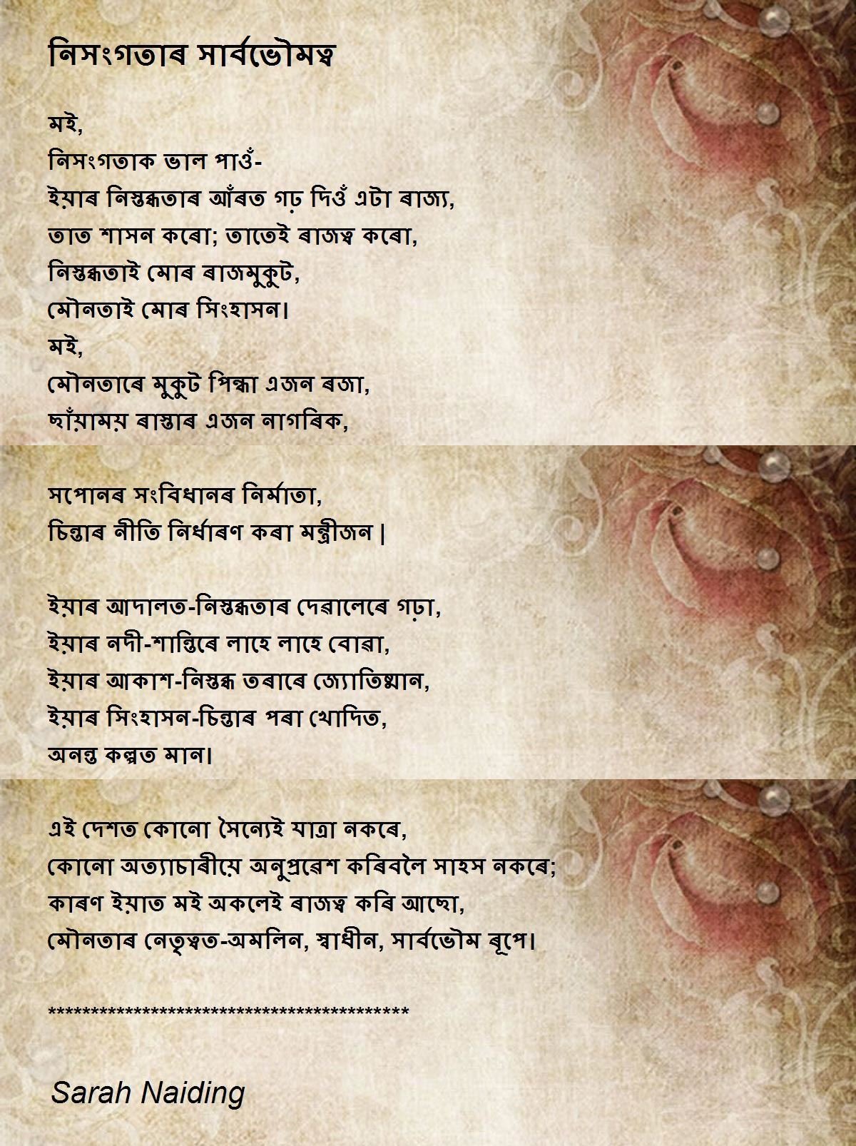মৌনতাৰ নেতৃত্বত-অমলিন, স্বাধীন, সার্বভৌম ৰূপে।