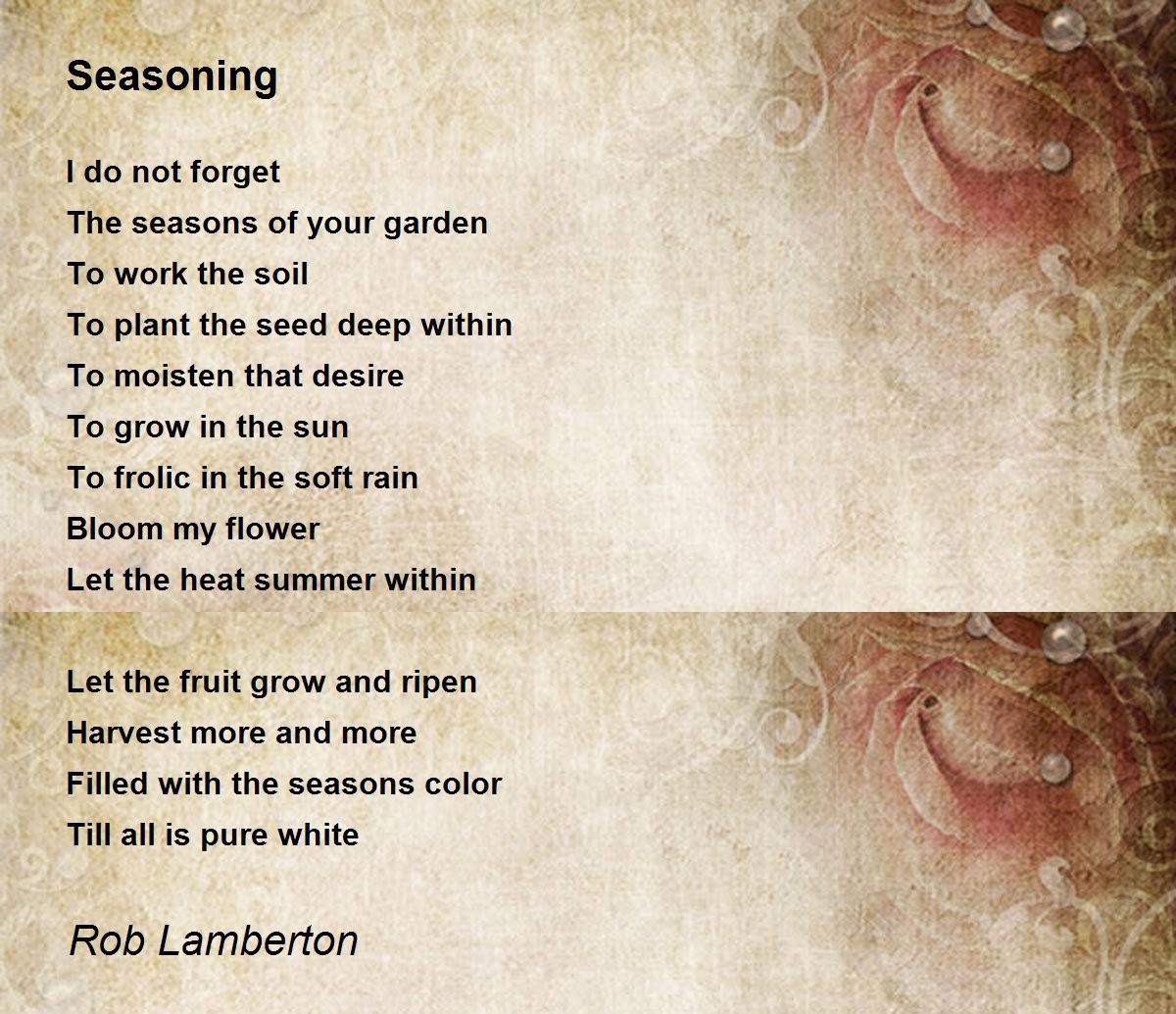 Embracing the seasons of our garden will lead to a fruitful and successful life. A meaningful and wonderful poem.