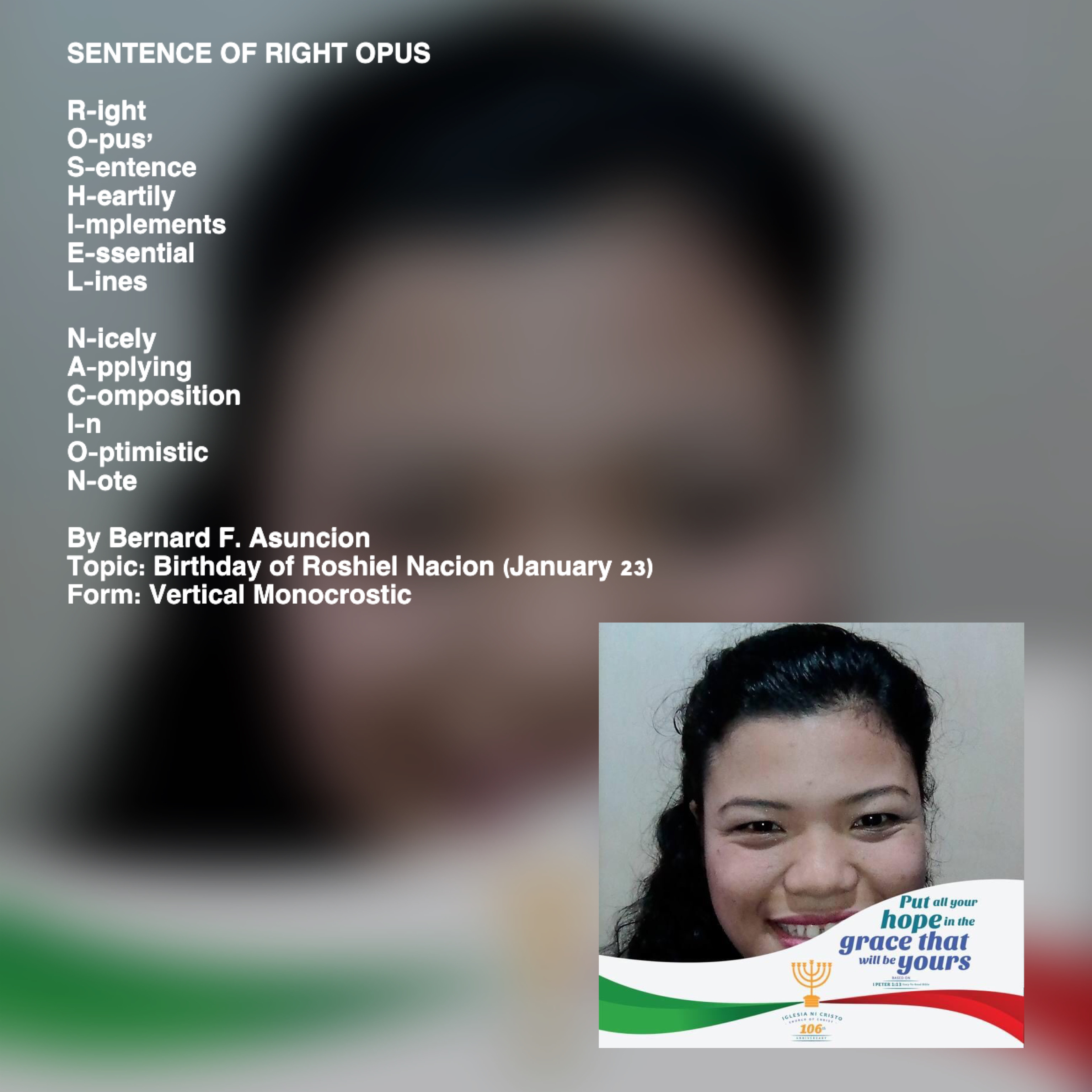 Topic: Birthday of Roshiel Nacion (January 23)