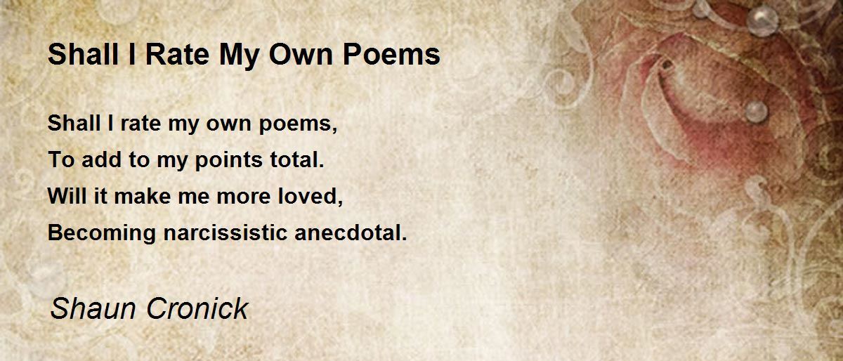 Shall I rate my own poems, To add to my points total. Will it make me more loved, Becoming narcissistic anecdotal.