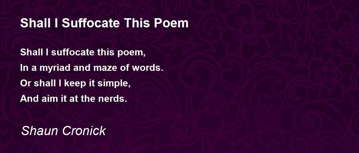 Shall I suffocate this poem, In a myriad and maze of words. Or shall I keep it simple, And aim it at the nerds.