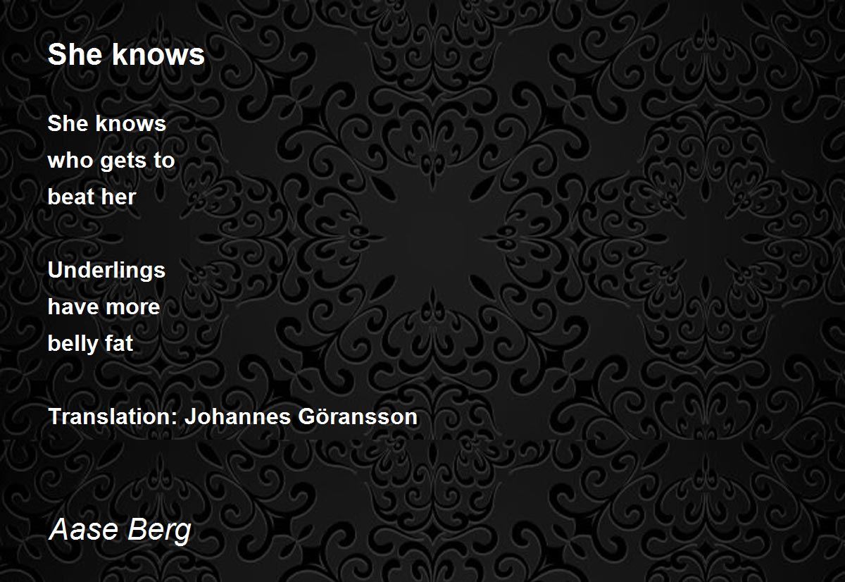 She knows who gets to beat her Underlings have more belly fat Translation: Johannes Göransson