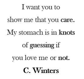 I want you to show me that you care. My stomach is in knots of guessing if you love me or not.