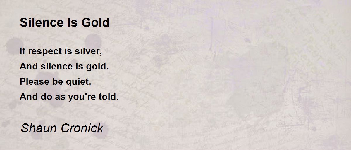 If respect is silver, And silence is gold. Please be quiet, And do as you're told.