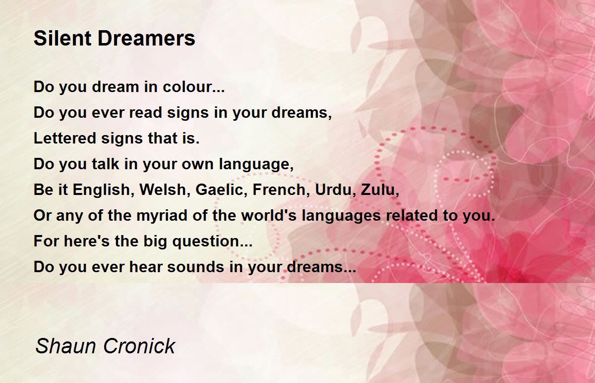 A most philosophical poem....I sometimes dream in colour and hear sounds...if it is voices, it's invariably in my own language.It's an intriguing ten from me Shaun!