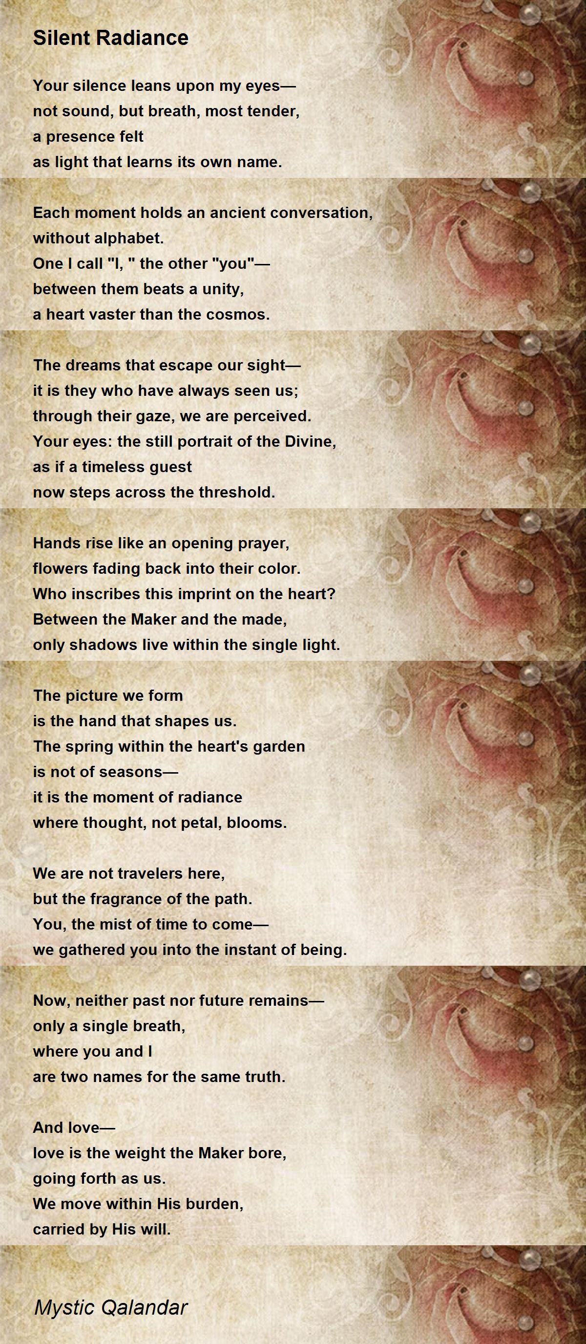 Your silence leans upon my eyes—