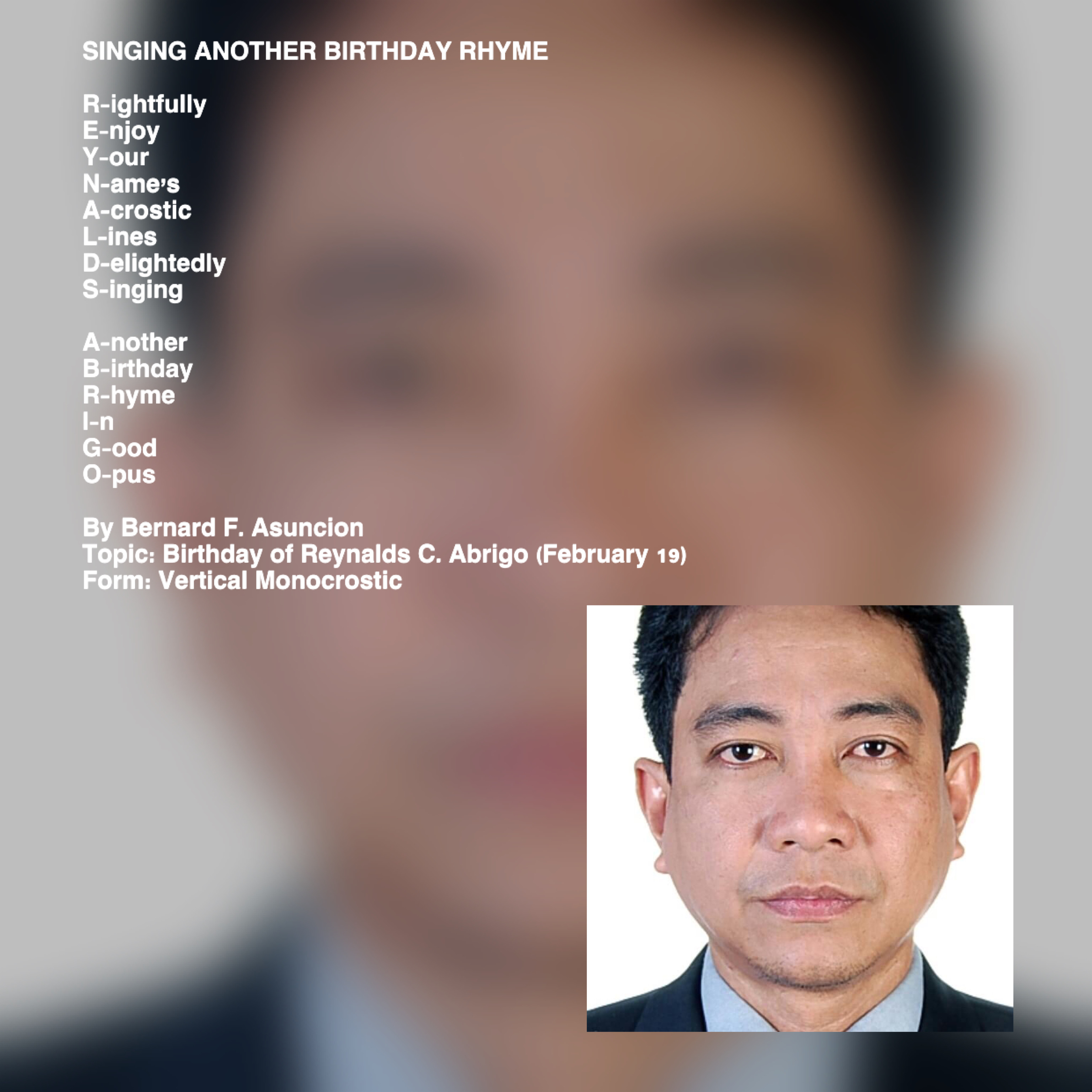 Topic: Birthday of Reynalds C. Abrigo (February 19)