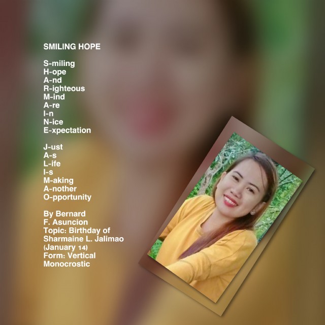Topic: Birthday of Sharmaine L. Jalimao (January 14)