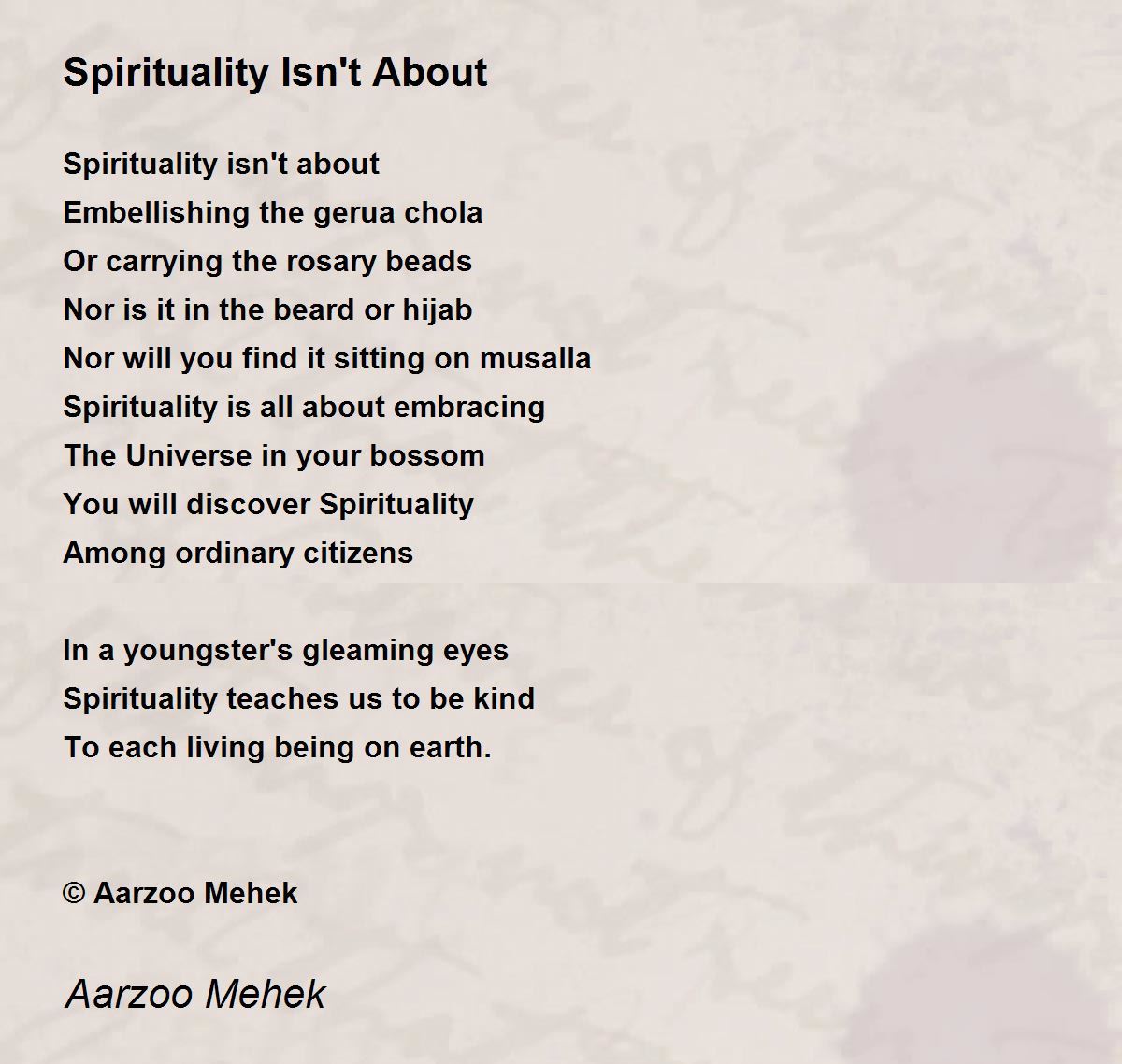 Spirituality is all about embracing The Universe in your bossom You will discover Spirituality Among ordinary citizens....great expression. A great poem.