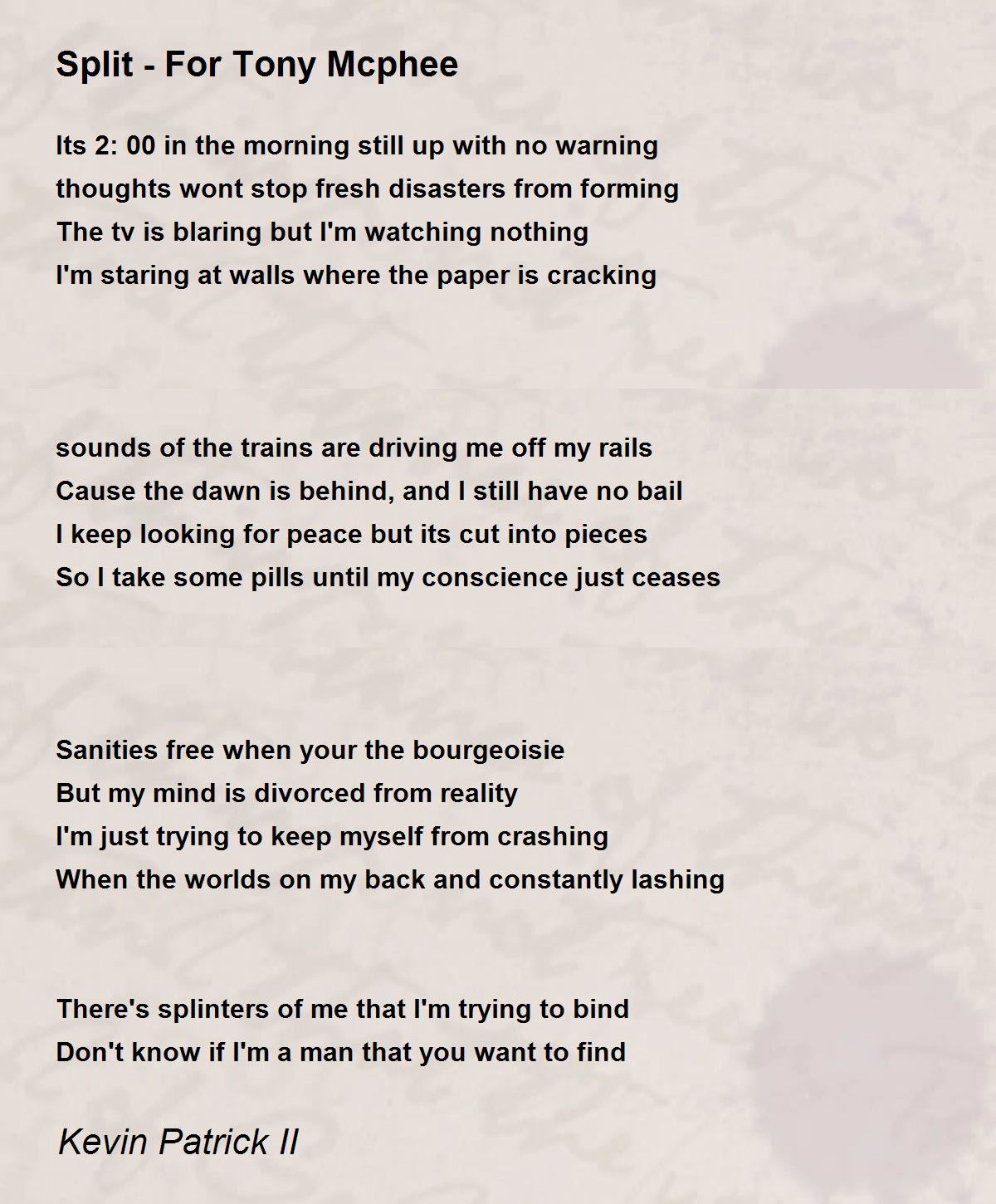 I'm staring at walls where the paper is cracking