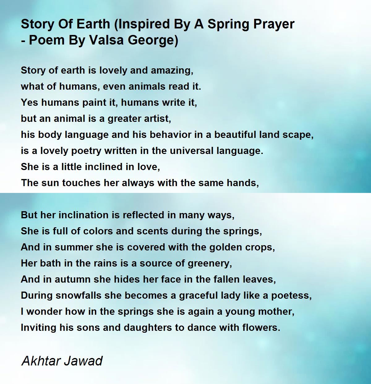 The story of Earth is truly lovely and amazing, Akhtar Sahab! 10+