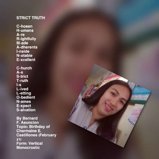 Topic: Birthday of Charmaine E. Castillones (February 27)