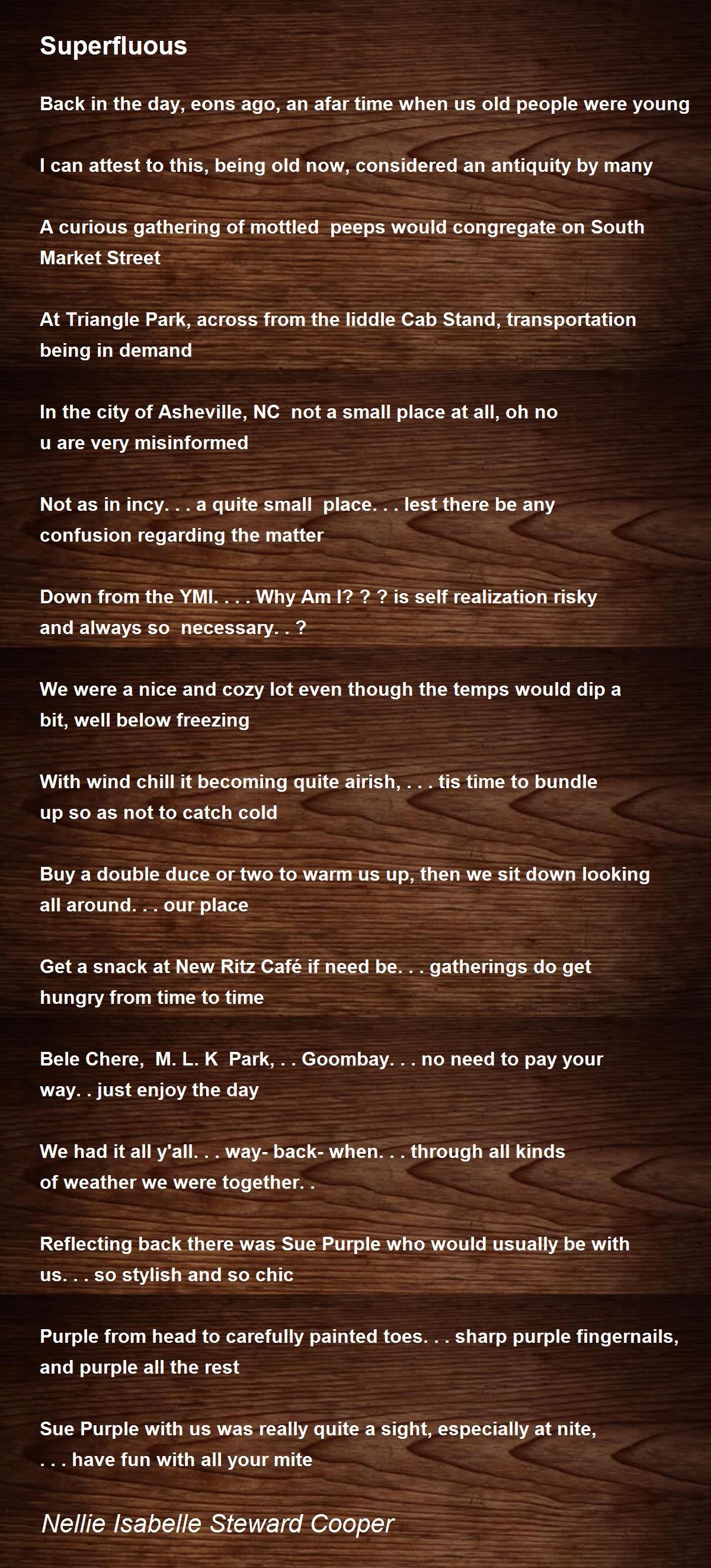 Reflecting back there was Sue Purple who would usually be with us... so stylish and so chic