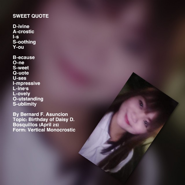 Topic: Birthday of Daisy D. Bosquillos (April 25)