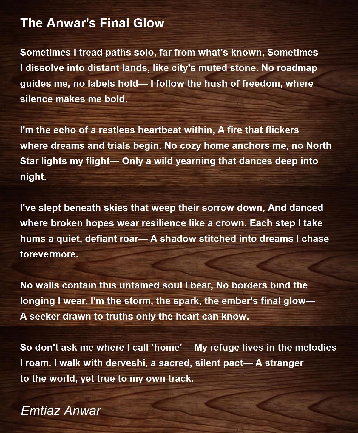 No walls contain this untamed soul I bear, No borders bind the longing I wear. I'm the storm, the spark, the ember's final glow— A seeker drawn to truths only the heart can know.