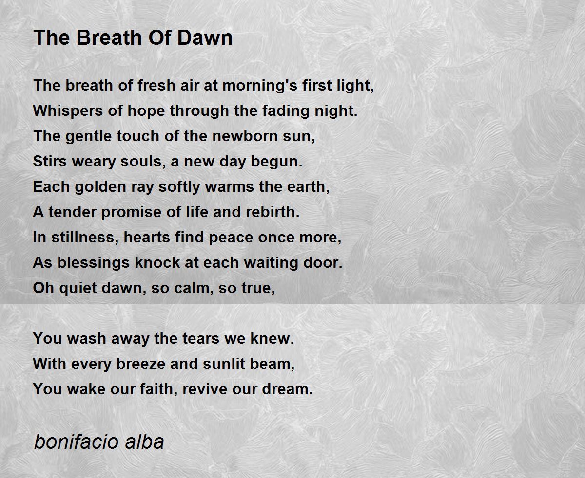 Oh quiet dawn, so calm, so true,
