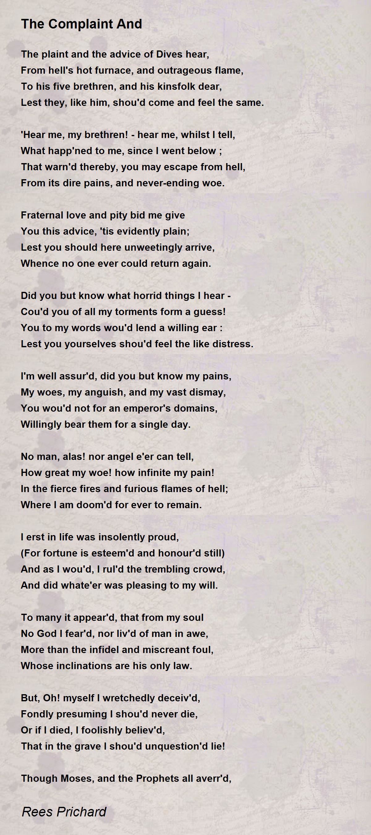 The plaint and the advice of Dives hear,