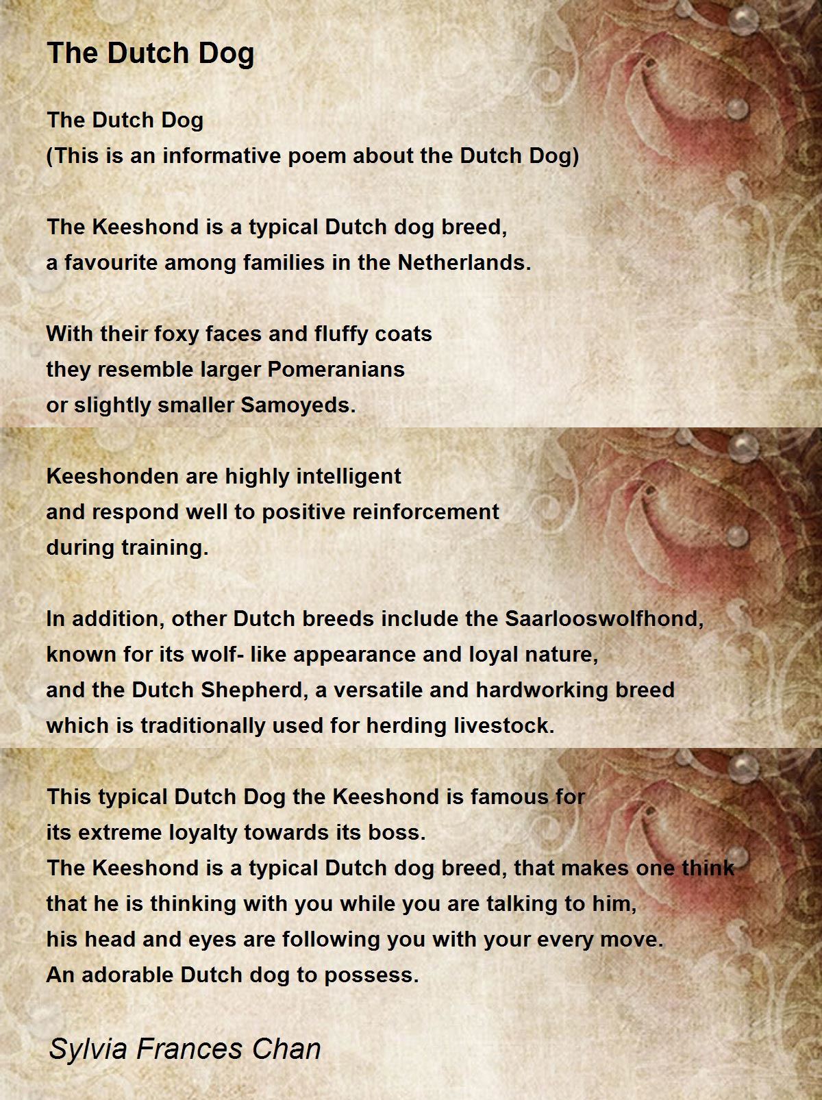I hope, someday, I would be able to have this kind of a dog. Its extreme loyalty and intelligence will definitely lure anyone to possess a Keeshond. Thank you for sharing this wonderful poem, my friend, Sylvia.