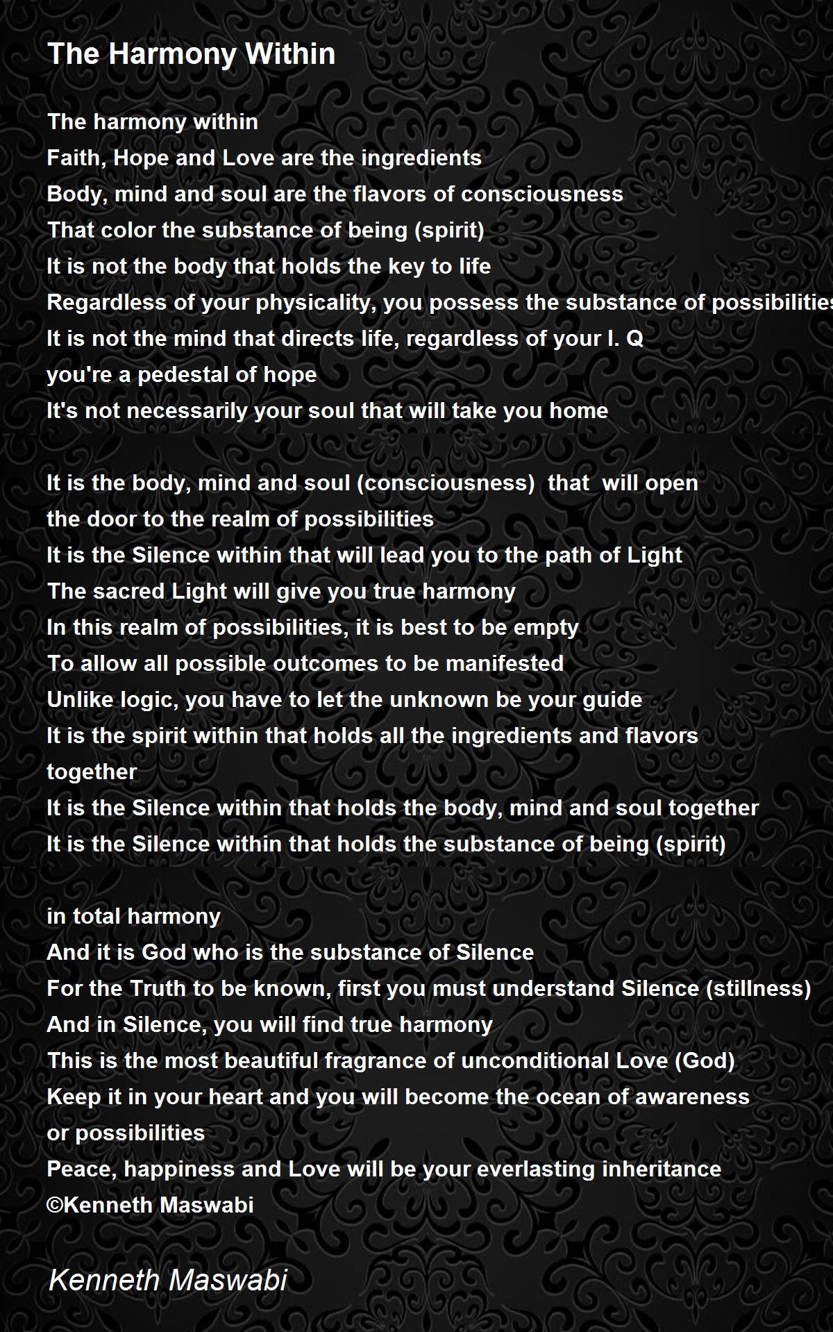 It is the Silence within that holds the substance of being (spirit) in total harmony