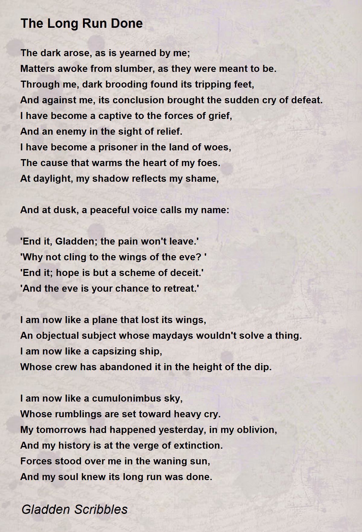 Through me, dark brooding found its tripping feet,