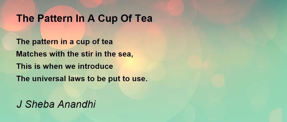 The pattern in a cup of tea Matches with the stir in the sea, This is when we introduce The universal laws to be put to use.