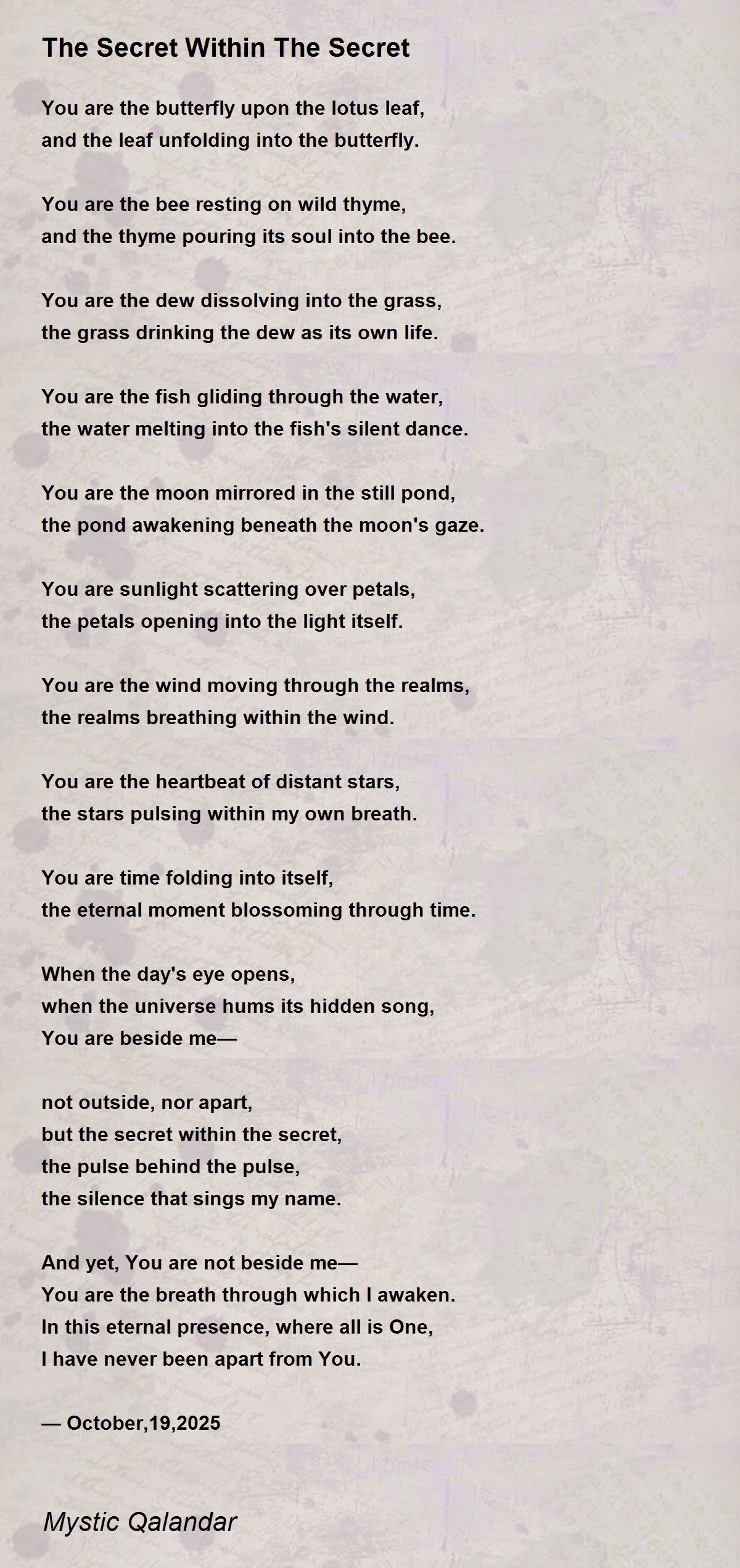 You are the moon mirrored in the still pond,
