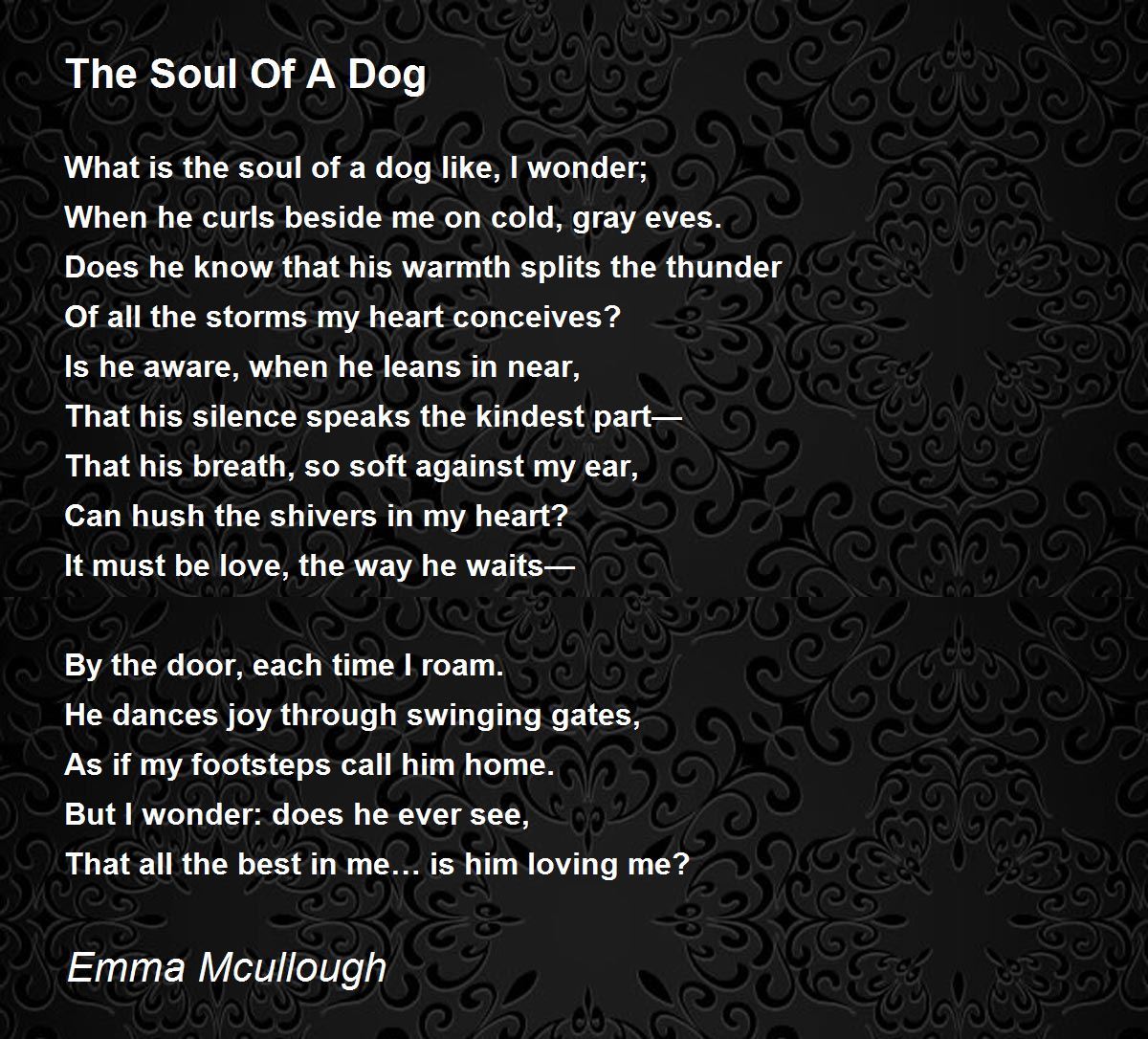 Aaw! ! ! What a sweet poem! ! ! Dogs are such wonderful creatures! ! ! I wonder the same... what can a dog perceive? Brilliant poem! ! ! Great rhymes too! ! ! I love reading all your poetry! ! !