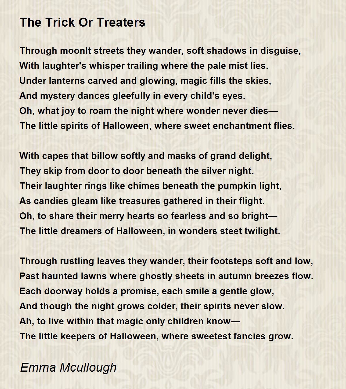Past haunted lawns where ghostly sheets in autumn breezes flow.