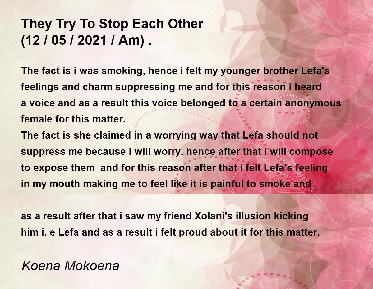 The fact is she claimed in a worrying way that Lefa should not suppress me because i will worry, hence after that i will compose to expose them and for this reason after that i felt Lefa's feeling in my mouth making me to feel like it is painful to smoke and as a result after that i saw my friend Xolani's illusion kicking him i.e Lefa and as a result i felt proud about it for this matter.